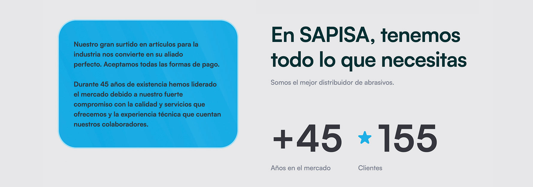 SAPISA es una empresa industrial con amplia trayectoria en todo el pa铆s, especializada en soluciones abrasivas y herramientas para el sector productivo. Su operaci贸n atiende necesidades t茅cnicas de alto nivel en industrias donde precisi贸n, rendimiento y confiabilidad son determinantes.